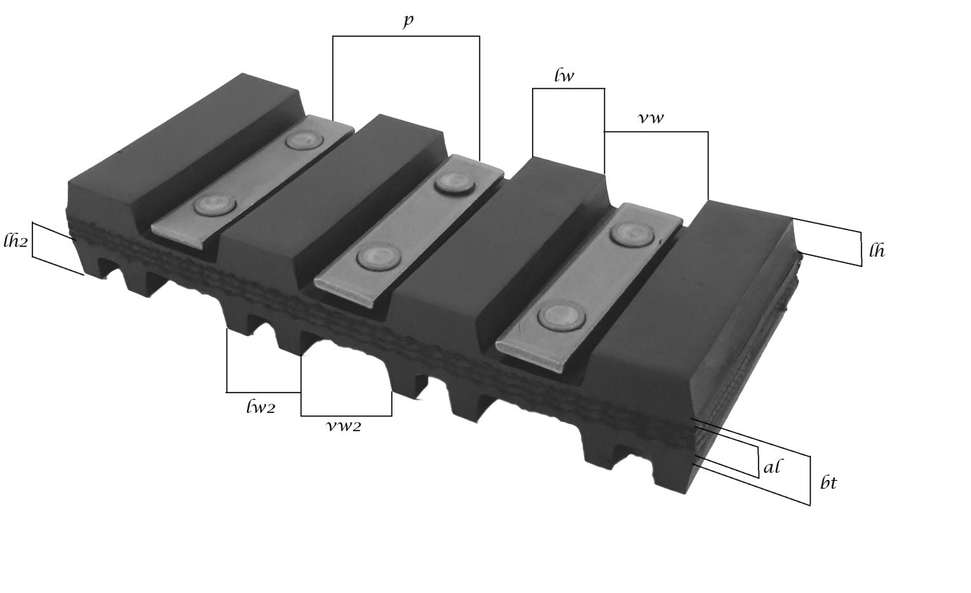 - standard High profile lug height of 8mm on top and bottom of double high profile traction belting. The high lug allows for more traction and longer lasting traction off the belting without interference from backing plates